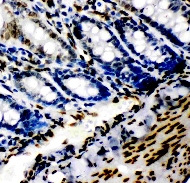 Immunohistochemistry: Rat Intestine stained with ARG43495 anti-Lamin B2 antibody at 1 μg/ml dilution.