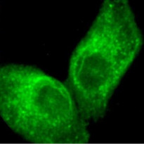 Immunofluorescence: U251 stained with ARG63966 anti-Leptin Receptor antibody at 10 µg/ml dilution.