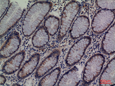 Immunohistochemistry: Paraffin-embedded Human colon cancer stained with ARG65741 anti-Lipocalin 1 antibody.