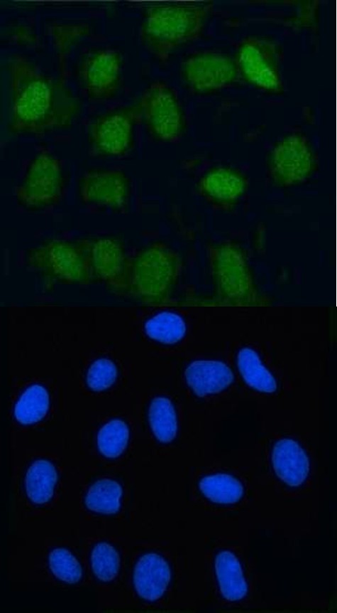 Immunofluorescence: U2OS stained with ARG44133 anti-MAD2L2 / REV7 antibody at 5 μg/ml dilution.