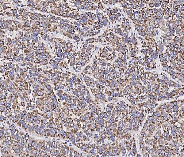 Immunohistochemistry: Human liver cancer stained with ARG44133 anti-MAD2L2 / REV7 antibody at 2 μg/ml dilution.