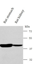 Western blot: Rat stomach and Rat kidney with ARG43908 anti-MCL1 antibody at 0.5 μg/mL dilution.