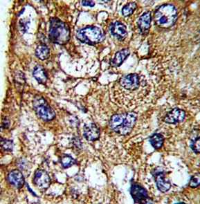 Immunohistochemistry: Formalin-fixed and paraffin-embedded Human hepatocarcinoma stained with ARG55687 anti-MDH1 antibody.