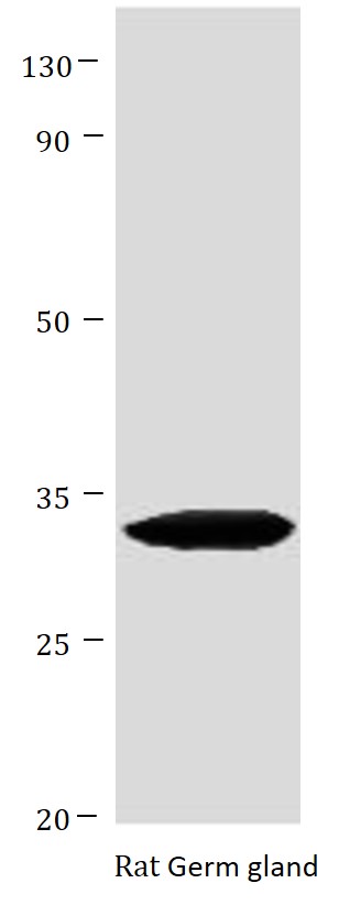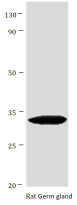 Western blot: Rat Germ gland tissue lysate stained with ARG43773 anti-METRNL antibody at 1:500 dilution.