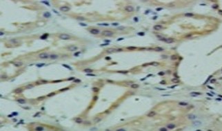 Immunohistochemistry: Paraffin-embedded Human kidney tissue stained with ARG43773 anti-METRNL antibody at 1:100 dilution.