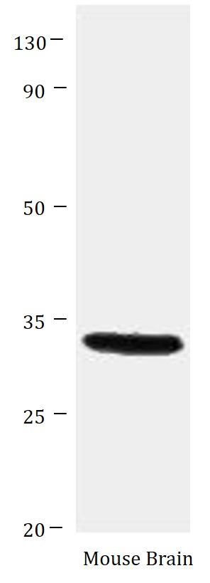 Western blot: Mouse brain tissue lysates stained with ARG43773 anti-METRNL antibody at 1:500 dilution.
