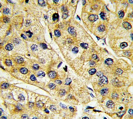 Immunohistochemistry: Formalin-fixed and paraffin-embedded Human hepatocarcinoma stained with ARG55847 anti-MICA antibody.