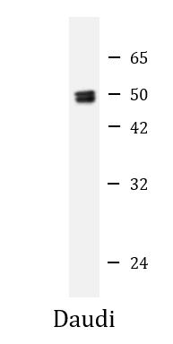 Western blot: 20 µg of Daudi whole cell lysate stained with ARG55847 anti-MICA antibody at 1:1000 dilution.