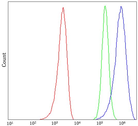 Flow Cytometry: MCF-7 stained with ARG45909 anti-MID2 / TRIM1 antibody at 1 µg/10^6 cells dilution.
