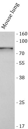 Western blot: Mouse lung stained with ARG45909 anti-MID2 / TRIM1 antibody at 0.5 μg/ml dilution.
