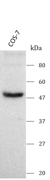 Western blot: COS-7 stained with ARG44202 anti-MINDY3 antibody at 0.5 μg/mL dilution.