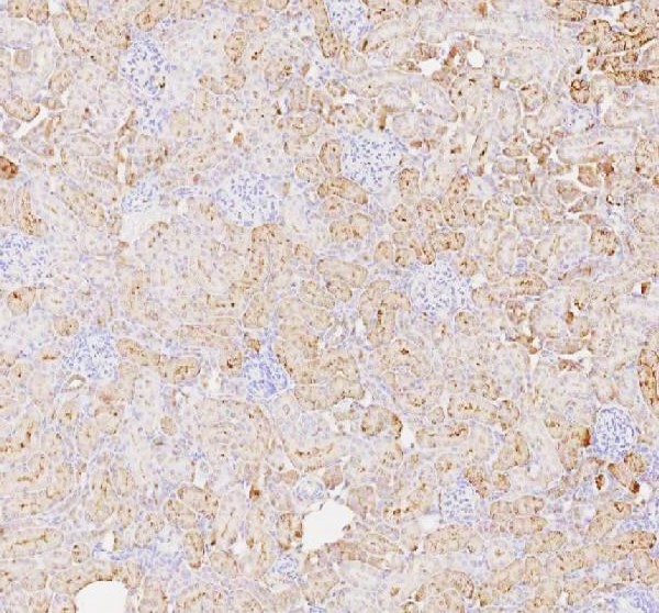 Immunohistochemistry: Rat kidney stained with ARG44572 anti-MIOX antibody at 2 μg/ml dilution.