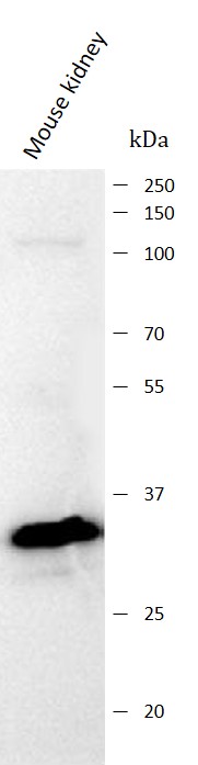 Western blot: Mouse kidney stained with ARG44572 anti-MIOX antibody at 0.5 μg/mL dilution.