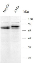 Western blot: HepG2 and A549 stained with ARG44195 anti-MISP antibody at 0.5 μg/mL dilution.