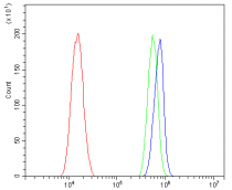 Flow Cytometry: A431 cells were blocked with 10% normal goat serum and then stained with ARG43139 anti-MNT antibody (blue) at 1 µg/10^6 cells for 30 min at 20°C, followed by incubation with DyLight®488 labelled secondary antibody. Isotype control antibody (green) was rabbit IgG (1 µg/10^6 cells) used under the same conditions. Unlabelled sample (red) was also used as a control.