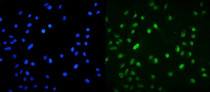 Immunofluorescence: A549 cells were blocked with 10% goat serum and then stained with ARG43139 anti-MNT antibody (green) at 2 µg/ml dilution, overnight at 4°C. DAPI (blue) for nuclear staining.
