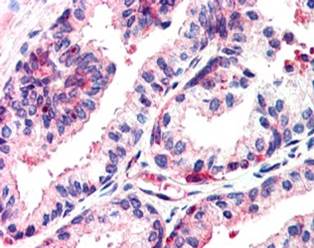 Immunohistochemistry: paraffin embedded Human Prostate. (Steamed antigen retrieval with citrate buffer pH 6) stained with ARG63586 anti-MSX1 antibody at 2.5 µg/ml dilution followed by AP-staining.