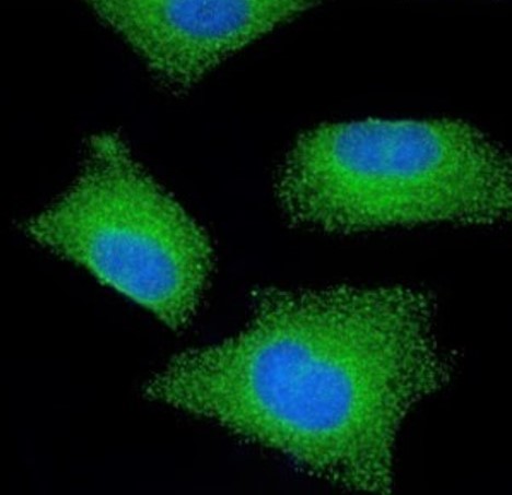 Immunofluorescence: A549 stained with ARG63173 anti-MTMR9 antibody at 10ug/ml dilution.