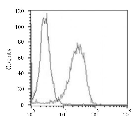 Flow Cytometry: HeLa cells stained with ARG55716 anti-MTTP antibody (right histogram) at 1:25 dilution or isotype control antibody (left histogram), followed by incubation with Alexa Fluor® 488 labelled secondary antibody.