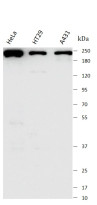 | Storage Instruction | For continuous use, store undiluted antibody at 2-8°C for up to a week. For long-term storage, aliquot and store at -20°C or below. Storage in frost free freezers is not recommended. Avoid repeated freeze/thaw cycles. Suggest spin the vial prior to opening. The antibody solution should be gently mixed before use. |