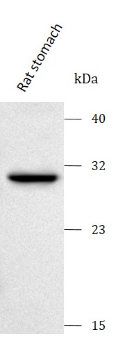 Western blot: Rat stomach stained with ARG43981 anti-Marapsin antibody at 0.5 μg/mL dilution.