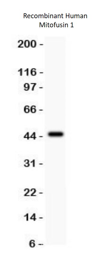 Western blot: 0.5 ng of Recombinant Human Mitofusin 1 protein stained with ARG57977 anti-Mitofusin 1 antibody.