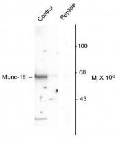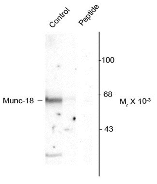 | Application Note | Specific for the ~65k Munc-18 protein phosphorylated at Ser513 . Immunolabeling is blocked by the phosphopeptide used as antigen but not by the corresponding dephosphopeptide. * The dilutions indicate recommended starting dilutions and the optimal dilutions or concentrations should be determined by the scientist. |