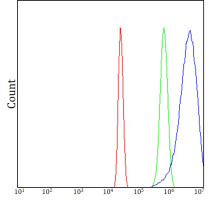 Flow Cytometry: HepG2 cells stained with ARG43963 anti-NADK2 antibody (blue) at 1 μg/1x10^6 cells dilution.
