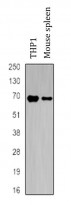 Western blot: THP1 and Mouse spleen lysates stained with ARG66556 anti-NCF2 / p67phox antibody.