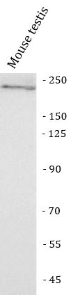 Western blot: Mouse testis stained with ARG45826 anti-NCOA6 antibody at 0.5 μg/ml dilution.