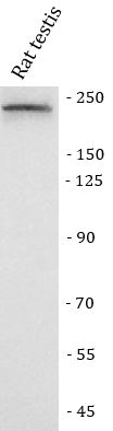 Western blot: Rat testis stained with ARG45826 anti-NCOA6 antibody at 0.5 μg/ml dilution.