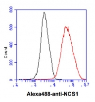 Flow Cytometry: HeLa cell line stained with ARG57081 anti-NCS1 antibody [11B8] at 2-5 µg for 1x10^6 cells (red line). Secondary antibody: Goat anti-Mouse IgG Alexa fluor 488 conjugate. Isotype control antibody was Mouse IgG (black line).
