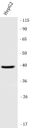 Western blot: HepG2 stained with ARG45620 anti-NDEL1 antibody at 0.5 μg/ml dilution.