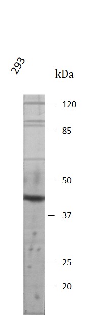 Western blot: 293 stained with ARG67106 anti-NEUROD2 antibody.