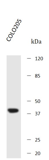 Western blot: COLO205 stained with ARG67106 anti-NEUROD2 antibody at 1:1000 dilution.