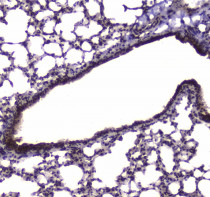 Immunohistochemistry: Paraffin-embedded Mouse lung tissue. Antigen Retrieval: Heat mediated was performed in Citrate buffer (pH 6.0, epitope retrieval solution) for 20 min. The tissue section was blocked with 10% goat serum. The tissue section was then stained with ARG59017 anti-NFIB / NF1B2 antibody at 1 µg/ml dilution, overnight at 4°C.