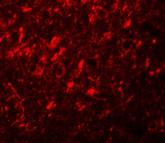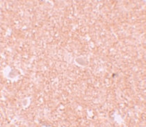 Immunohistochemistry: Paraffin-embedded Human brain tissue stained with ARG43236 anti-NLRP10 / NALP10 antibody at 10 µg/ml dilution.