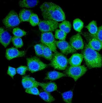 Immunofluorescence: A431 stained with ARG45708 anti-NMI / n Myc Interactor antibody at 5 μg/ml dilution.