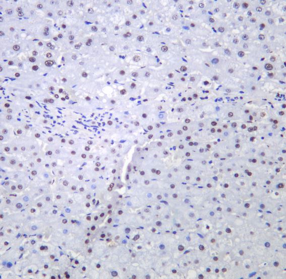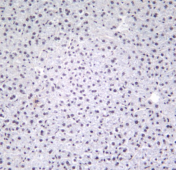 Immunohistochemistry: Mouse liver stained with ARG67272 anti-NPM1 / Nucleophosmin antibody.
