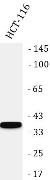 Western blot: HCT-116 stained with ARG67272 anti-NPM1 / Nucleophosmin antibody.