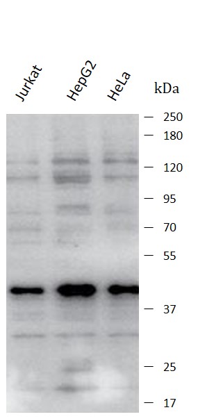 | Storage Instruction | For continuous use, store undiluted antibody at 2-8°C for up to a week. For long-term storage, aliquot and store at -20°C or below. Storage in frost free freezers is not recommended. Avoid repeated freeze/thaw cycles. Suggest spin the vial prior to opening. The antibody solution should be gently mixed before use. |