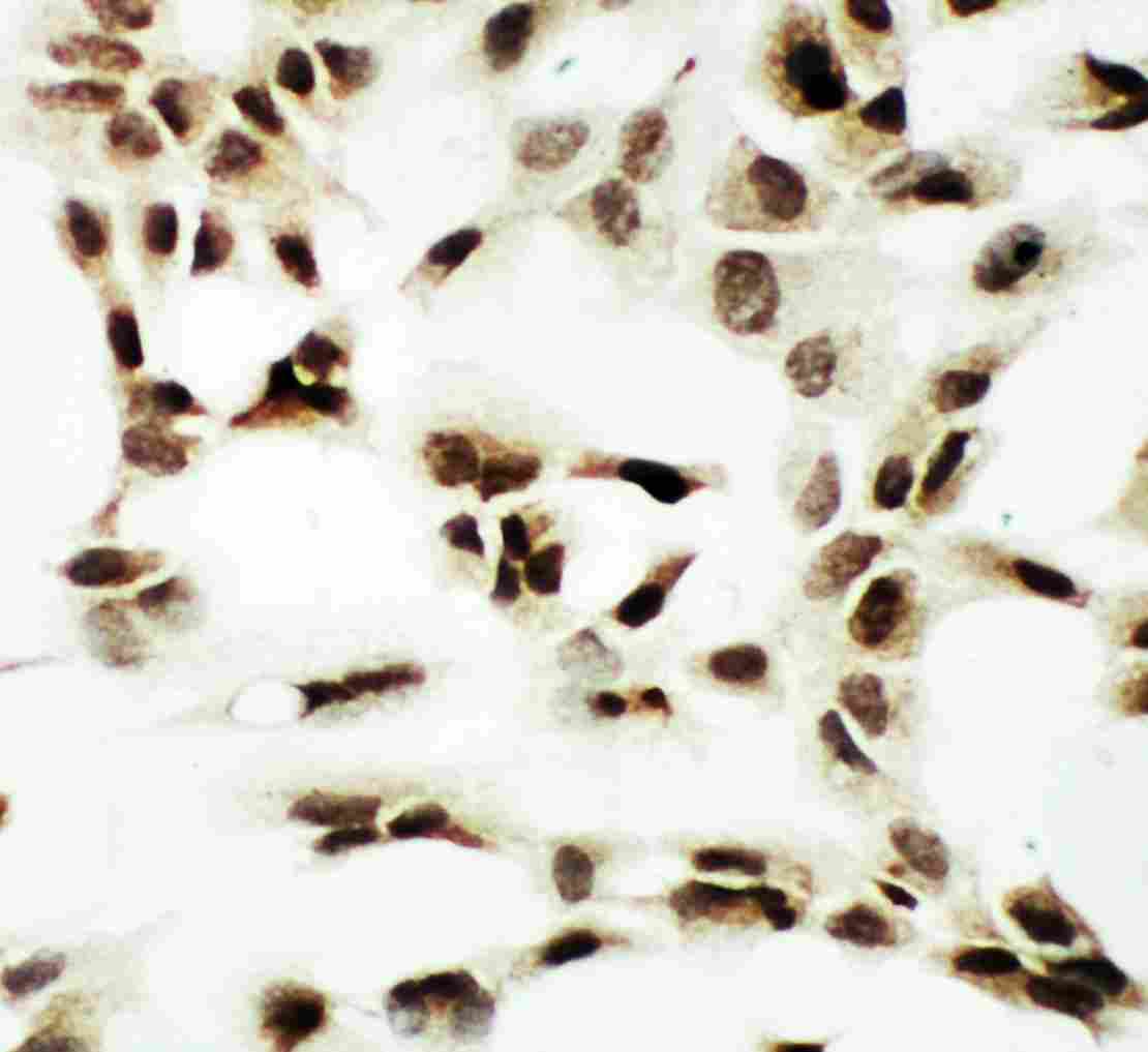 Immunocytochemistry: A549 cells stained with ARG40699 anti-NRF1 antibody.
