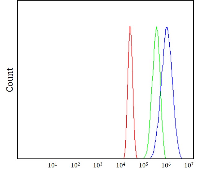 Flow Cytometry: MCF-7 stained with ARG44172 anti-NTHL1 antibody at 1 μg/1x10^6 cells dilution.