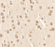 Immunohistochemistry: Paraffin-embedded Rat brain tissue stained with ARG59053 anti-NUCB2 / Nucleobindin 2 antibody at 20 µg/ml dilution.