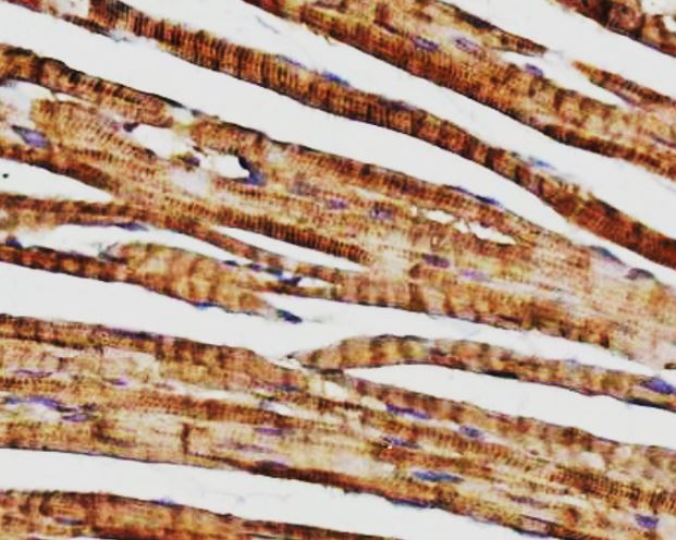 Immunohistochemistry: Rat heart stained with ARG45824 anti-Nebulette antibody at 2 μg/ml dilution.