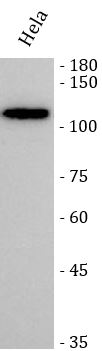 Western blot: Hela stained with ARG45925 anti-Neuroligin 1 antibody at 0.5 μg/ml dilution.
