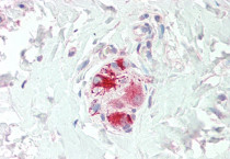 Immunohistochemistry: Paraffin-embedded Human colon tissue. Antigen Retrieval: Steam tissue section in Citrate buffer (pH 6.0). The tissue section was stained with ARG64277 anti-Neurturin antibody at 5 µg/ml dilution followed by AP-staining.