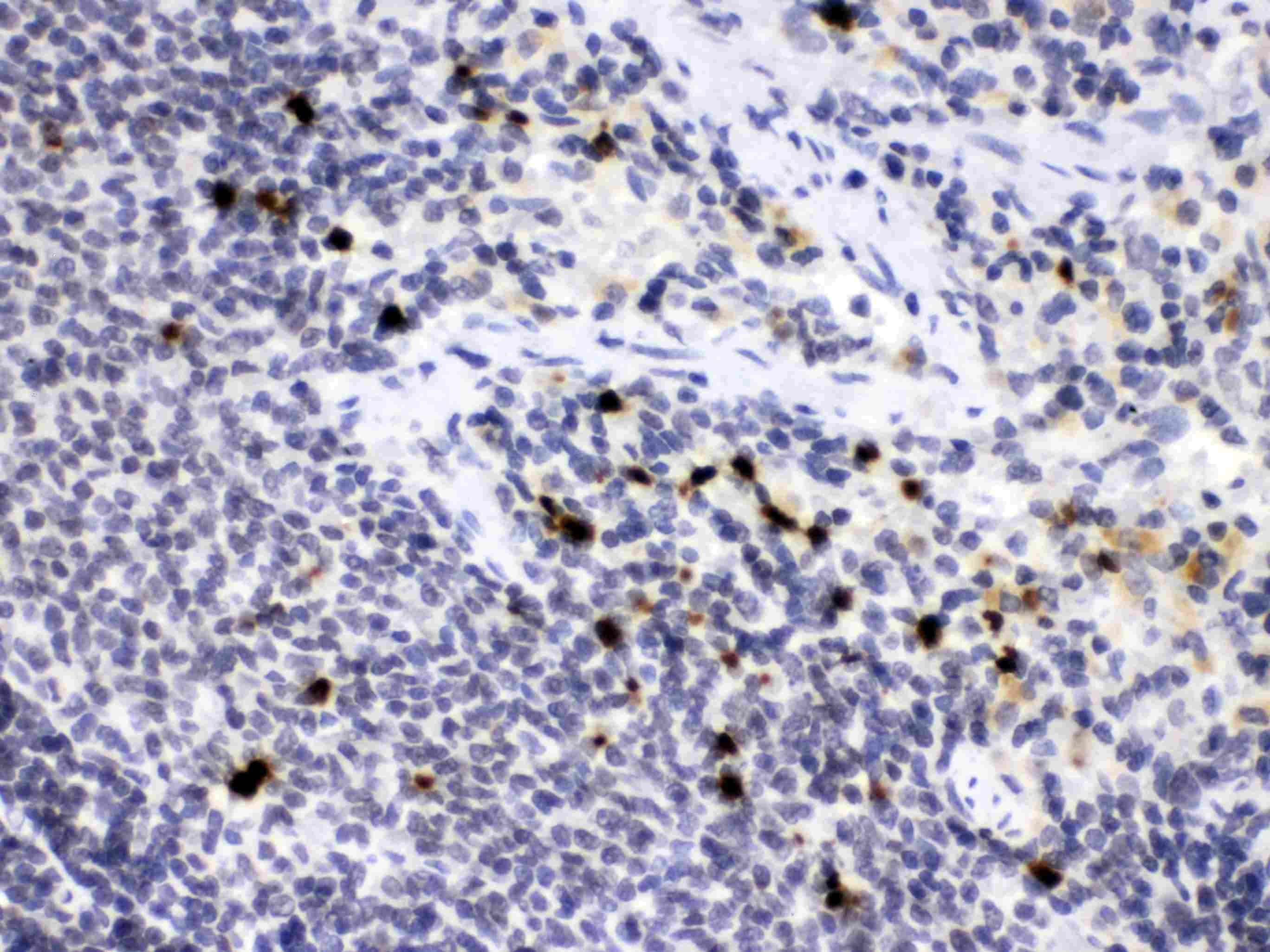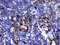 Immunohistochemistry: Paraffin-embedded Rat spleen tissue stained with ARG40838 anti-Neutrophil Elastase antibody at 1 µg/ml dilution.