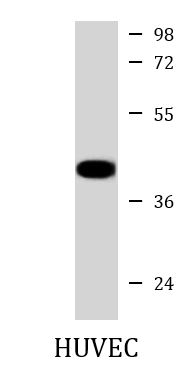 Western blot: 35 µg of HUVEC cell lysate stained with ARG55697 anti-OLR1 / LOX1 antibody at 1:1000 dilution.