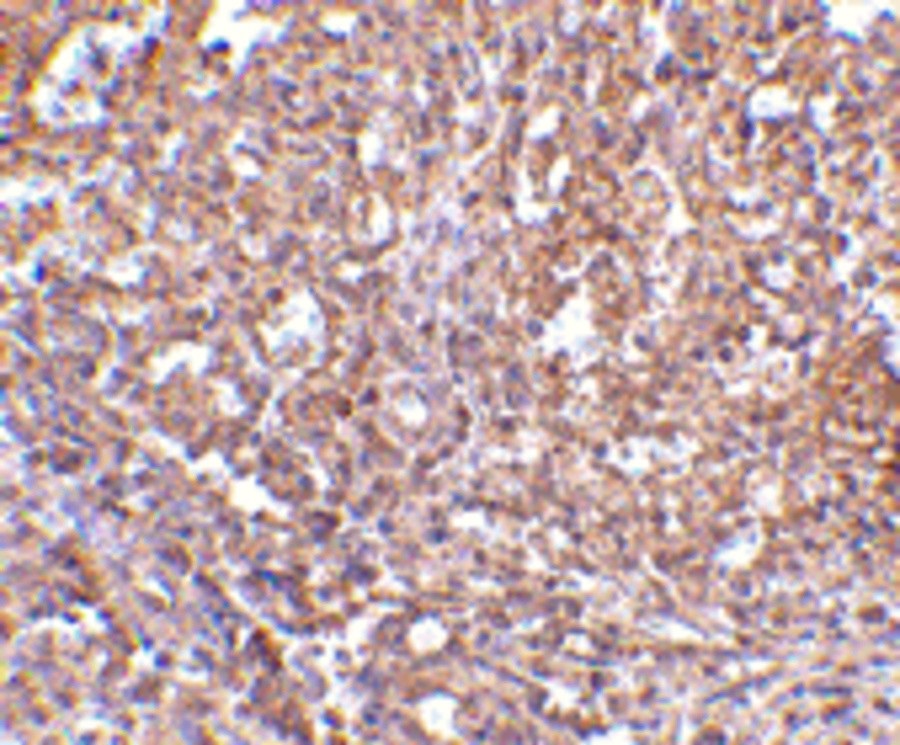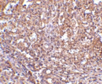 Immunohistochemistry: Human spleen tissue stained with ARG56837 anti-ORAI1 / CRACM1 antibody at 2.5 µg/ml dilution.